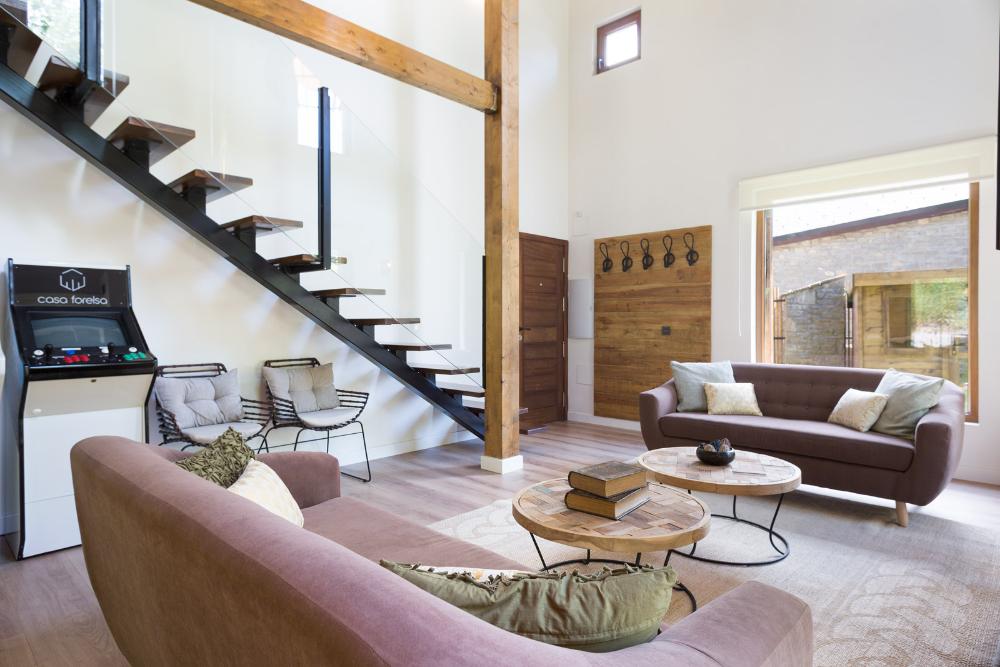 Un verdadero concepto de LUJO EN LA MONTAÑA, con capacidad hasta 8 personas, distribuido en 4 dormitorios y 3 baños. Techos inclinados, maderas recuperadas y una gran chimenea le recibirán en un amplio salón-comedor de doble altura.